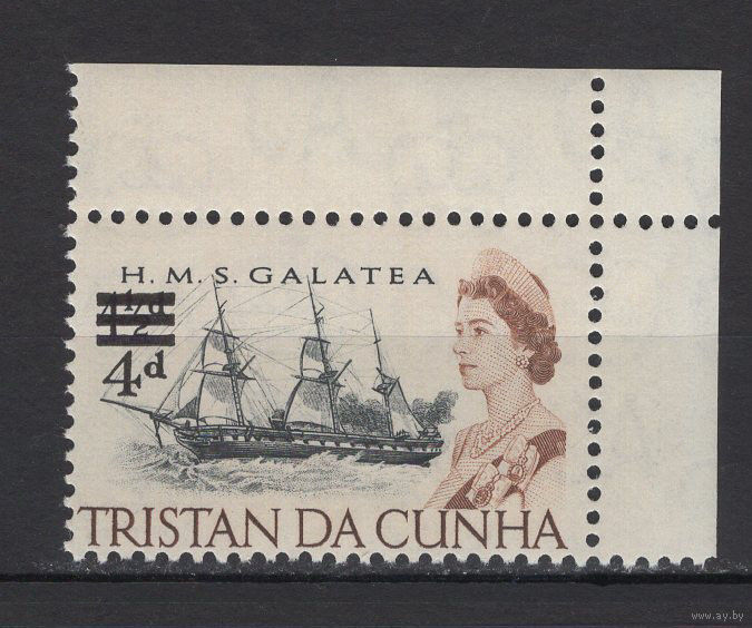 Тристан да Кунья /Tristan da Cunha 1967** Парусный Корабль Новый номинал Елизавета II SG#108
