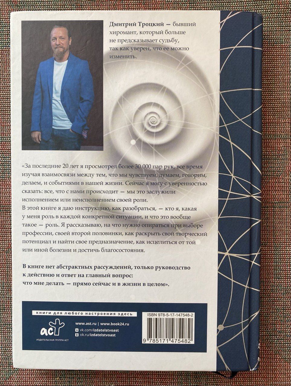 Дмитрий Троцкий — бывший хиромант, который больше не предсказывает судьбу, так как уверен, что ее можно изменить. `За последние 20 лет я просмотрел более 30 000 пар рук, все время изучая взаимосвязи между тем, что мы чувствуем, думаем, говорим, делаем, и событиями в нашей жизни. Сейчас я могу с уверенностью сказать: все, что с нами происходит — мы это заслужили исполнением или неисполнением своей роли. В этой книге я даю инструкцию, как разобраться, — кто я, какая у меня роль в каждой конкретной ситуации, и что это вообще такое — роль. Я рассказываю, на что нужно опираться при выборе профессии, своей второй половинки, как раскрыть свой творческий потенциал и найти свое предназначение, как исцелиться от той или иной болезни и достичь благосостояния. В книге нет абстрактных рассуждений, только руководство к действию и ответ на главный вопрос: что мне делать — прямо сейчас и в жизни в целом` .