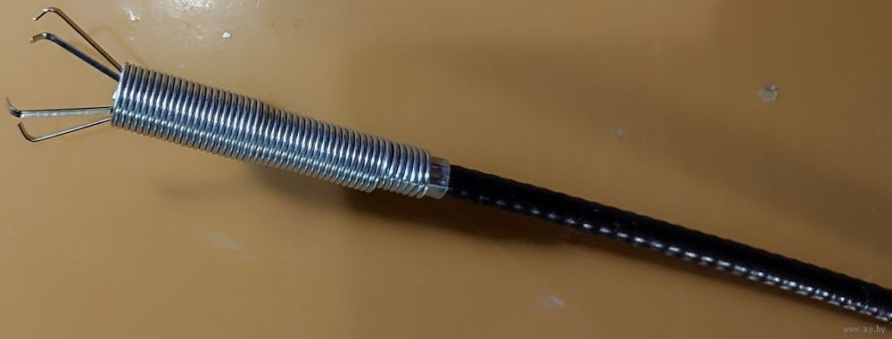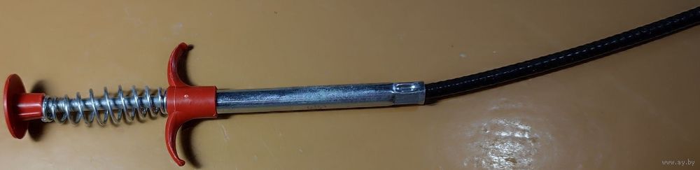 Универсальный инструмент для прочистки труб от мусора и засоров. На конце троса находится щуп, который позволит без труда захватить источник засора и беспрепятственно его удалить из трубы. Щуп активируется нажатием на верхнюю часть троса. За счет гибкости и упругости, трос без проблем преодолевает повороты и соединения канализационной системы, продвигаясь к образовавшемуся засору
