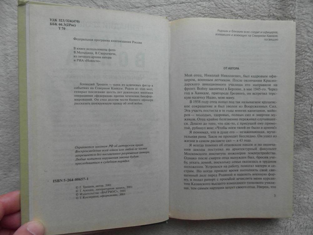 Автор книги Геннадий Трошев - одна из ключевых фигур в событиях на Северном Кавказе. Родом из этих мест, генерал последние шесть лет руководил многими операциями `федералов` против чеченских бандформирований. Он счел долгом чести боевого офицера рассказать шокирующую правду об этой войне. `Решив написать мемуары, я надеялся - мне есть, что сказать читателям, особенно тем, кто потерял в Чечне родных и близких. Они наверняка хотят знать, за что и как погибали их сыновья, мужья, братья... Судьба сводила меня на войне с разными людьми: и с политиками, и с военачальниками самого высокого ранга, и с лидерами бандитских формирований, и с простыми российскими солдатами. Мне довелось увидеть их в разных ситуациях. Каждый из них проявлял себя по-разному: кто-то был тверд и решителен, кто-то пассивен и безразличен, а кто-то разыгрывал свою карту в этой войне...`