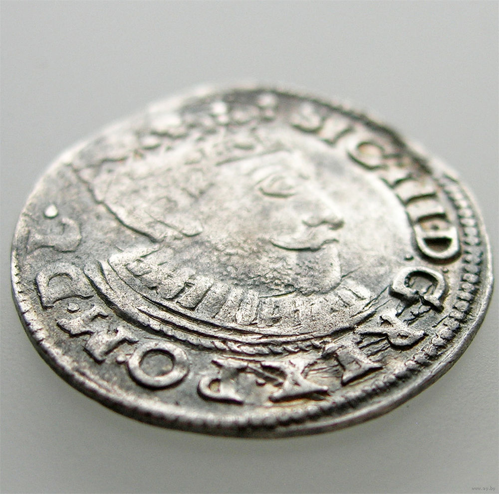 Вариант с POLONIAE на реверсе, инициалы I-D (коронный казначей Ян Дульский). Внизу герб Пржегоня, слева – скрещенные крючки, клеймо минцмейстера Теодора Буша. Ав - корона украшена розетками, борода большая.
