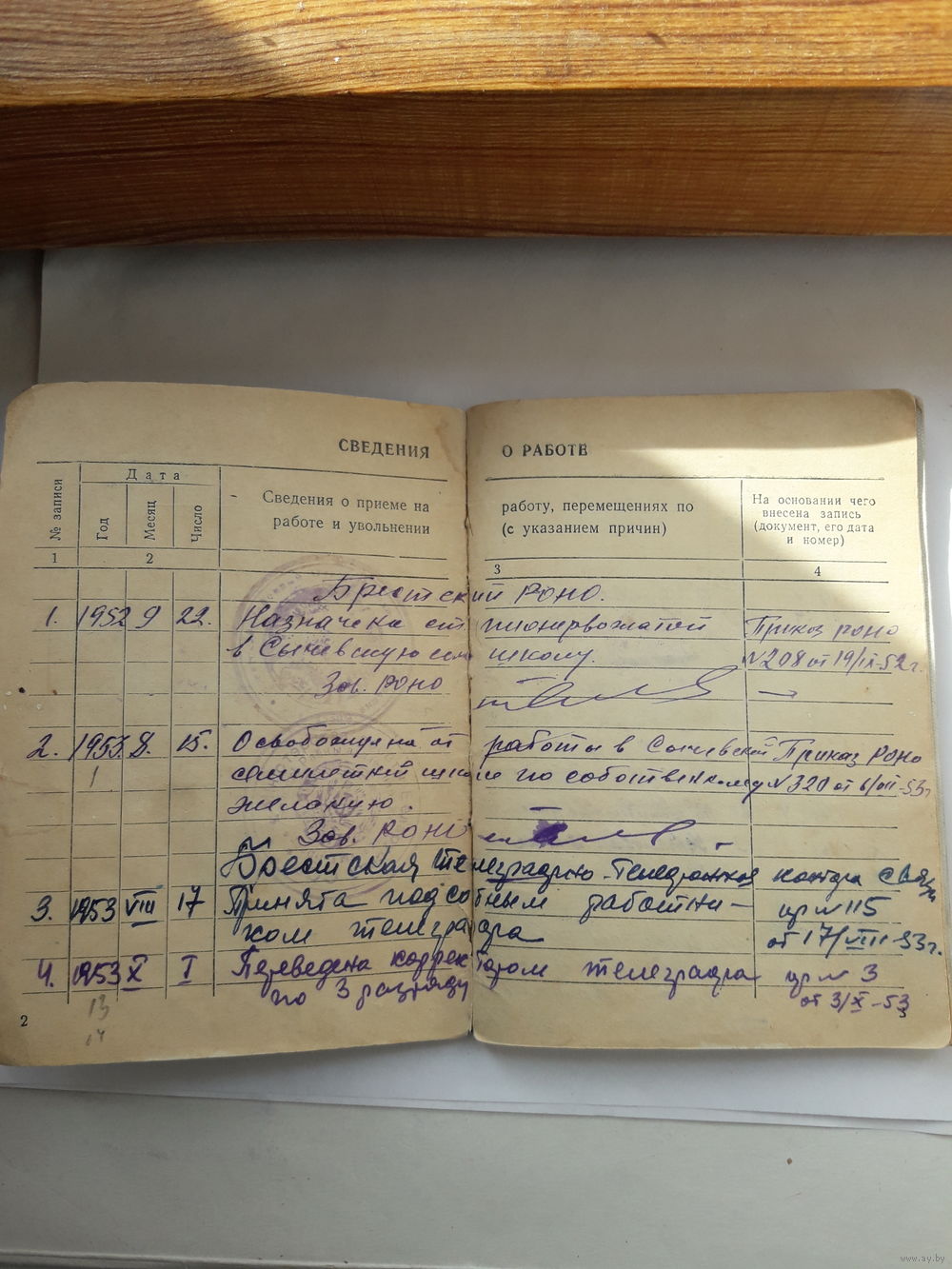 ТРудовая книжка бел.яз 1952 (начало трудового пути-ст. пионервожатая)