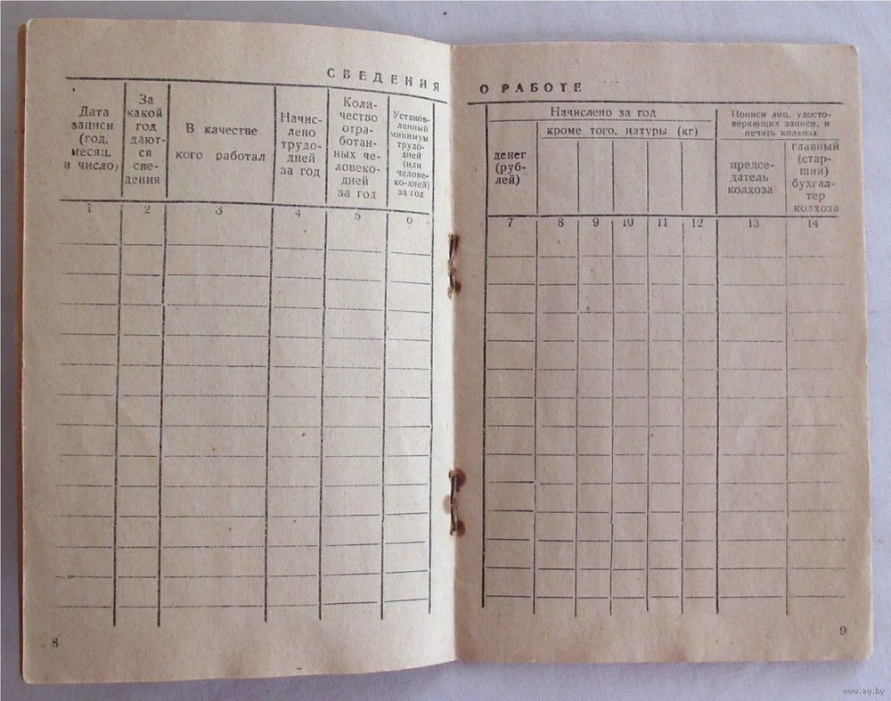 ТРУДОВАЯ КНИЖКА КОЛХОЗНИКА