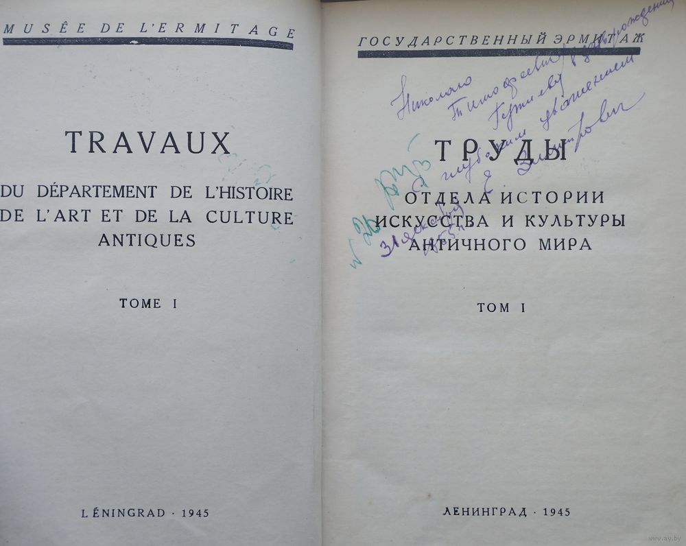Большой формат. Тираж 2000 экз. 228 стр. Труды отдела истории искусства и культуры античного мира = Travaux du département de l'histoire de l'art et de la culture antiques / Государственный Эрмитаж ; ответственный редактор А. А. Передольская Т. 1