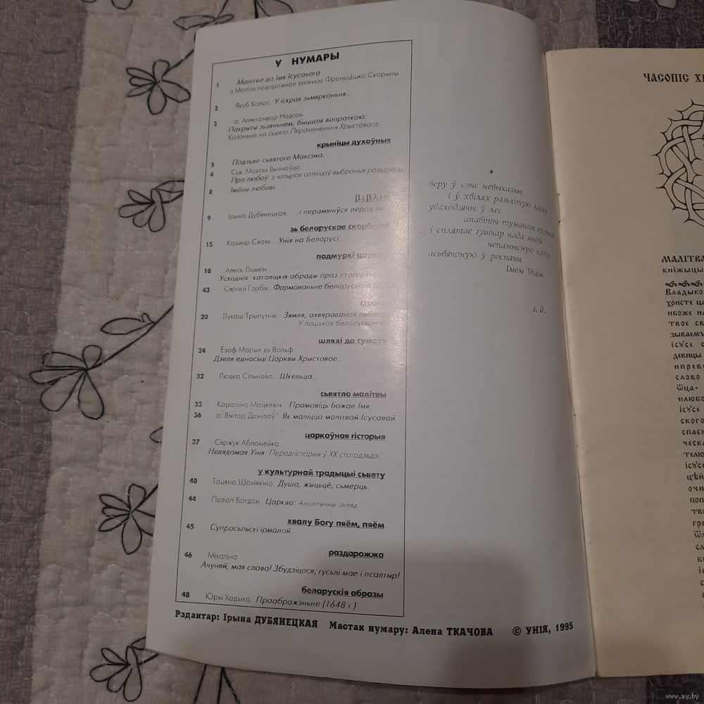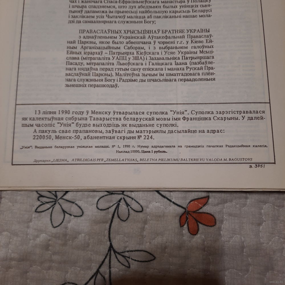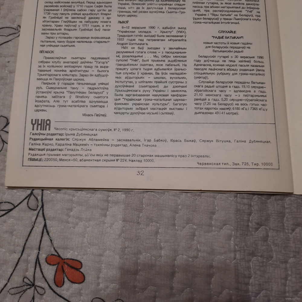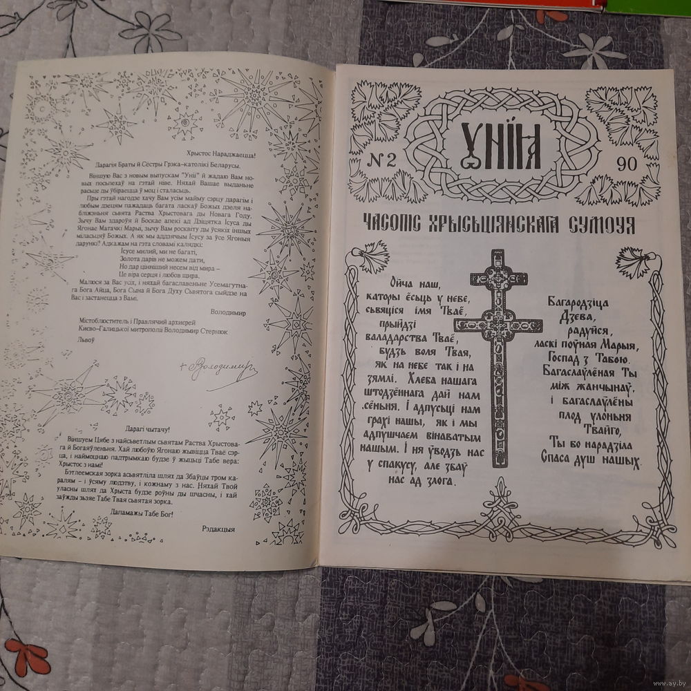 Тры часопіса Унія, нумары 1,2-1990г., два календары газэты Царква 1997, 1998гг.