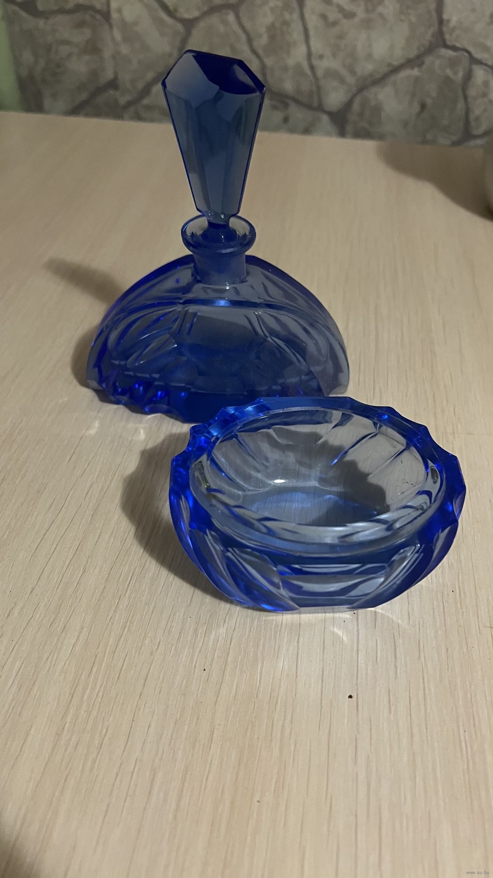 Винтажный флакон от духов и декоративная чаша из синего стекла. Можно использовать как вазу для цветов, чашу-для хранения украшений