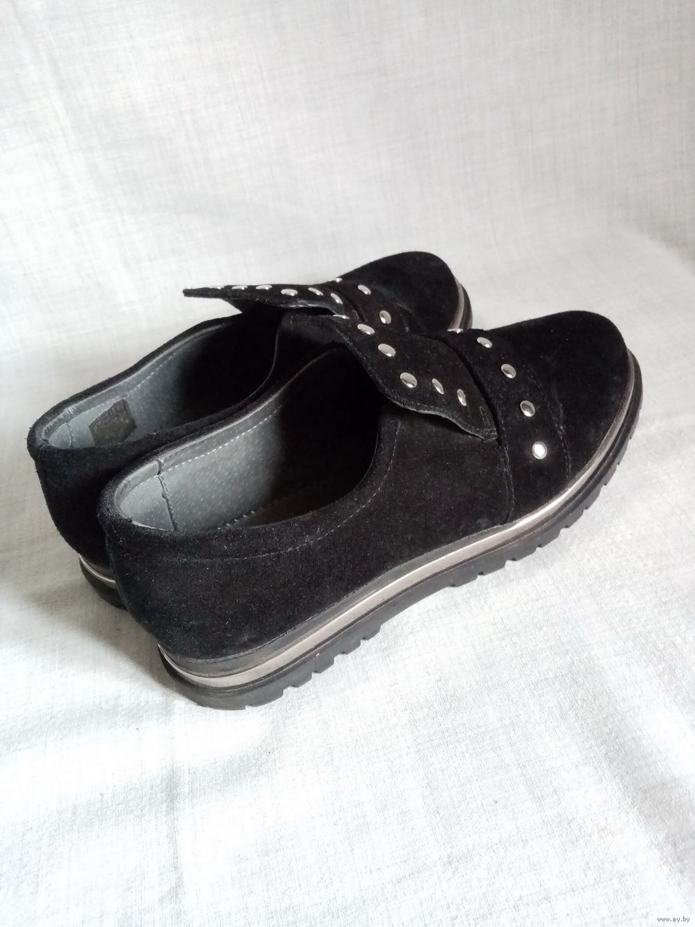 Натуральная замша, под язычком резинка для подъёма.