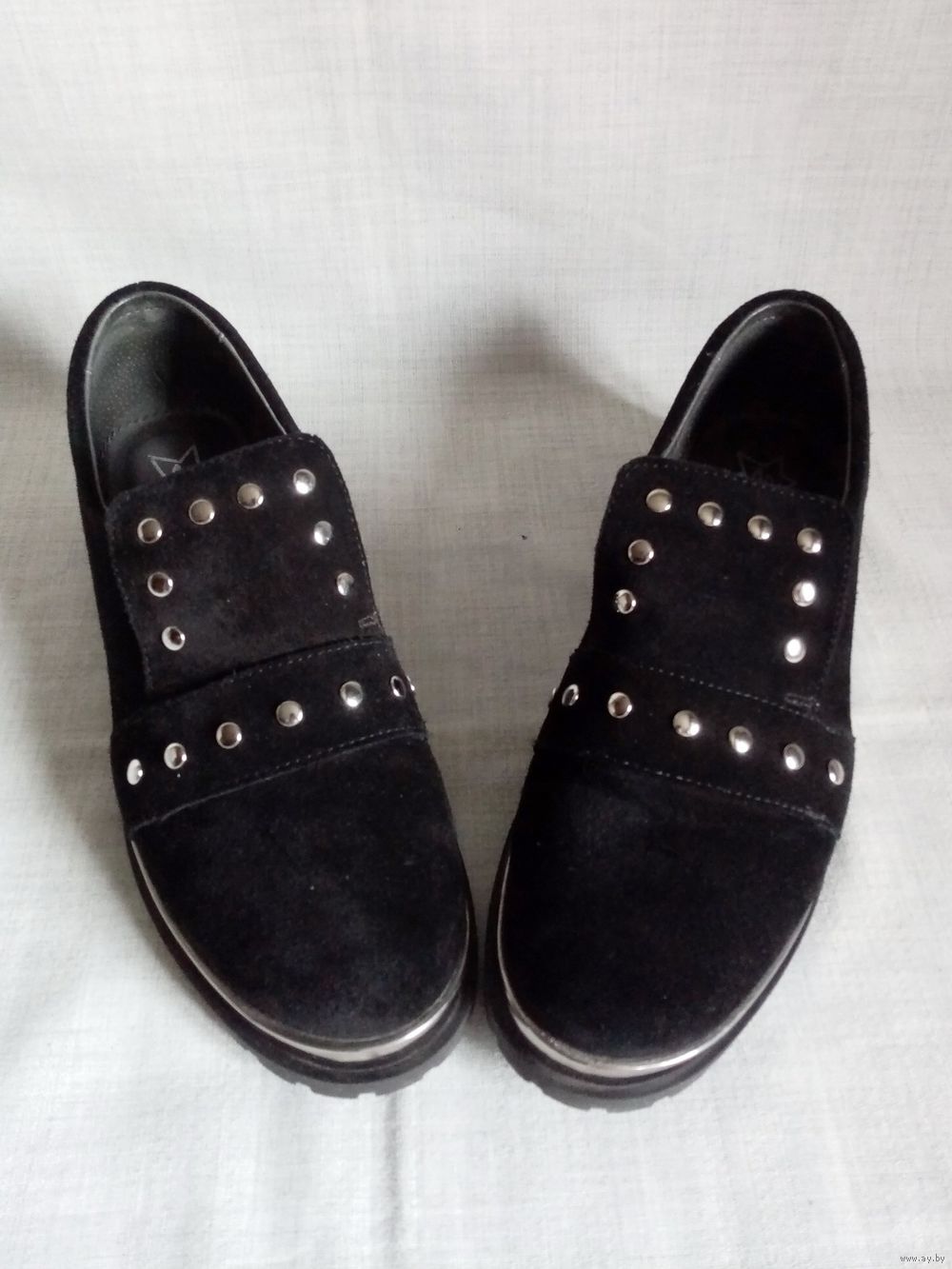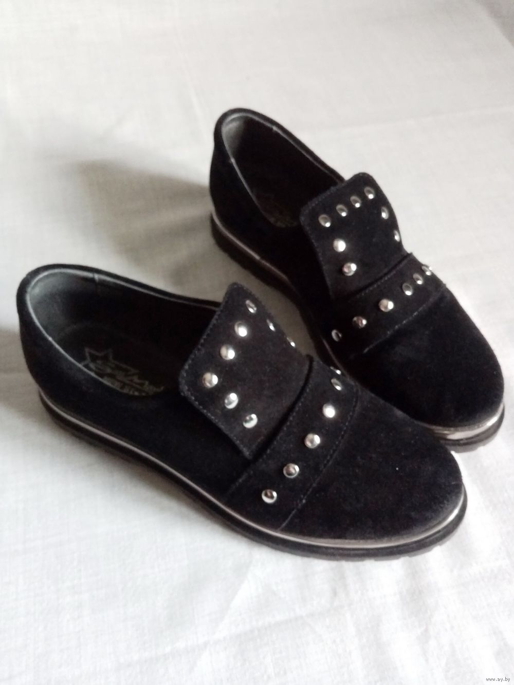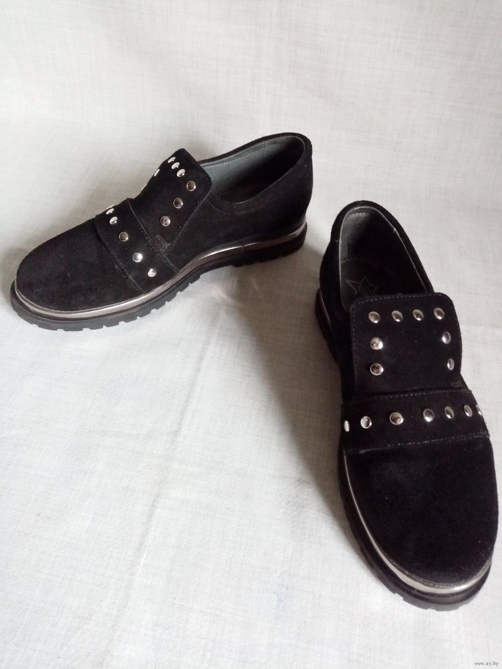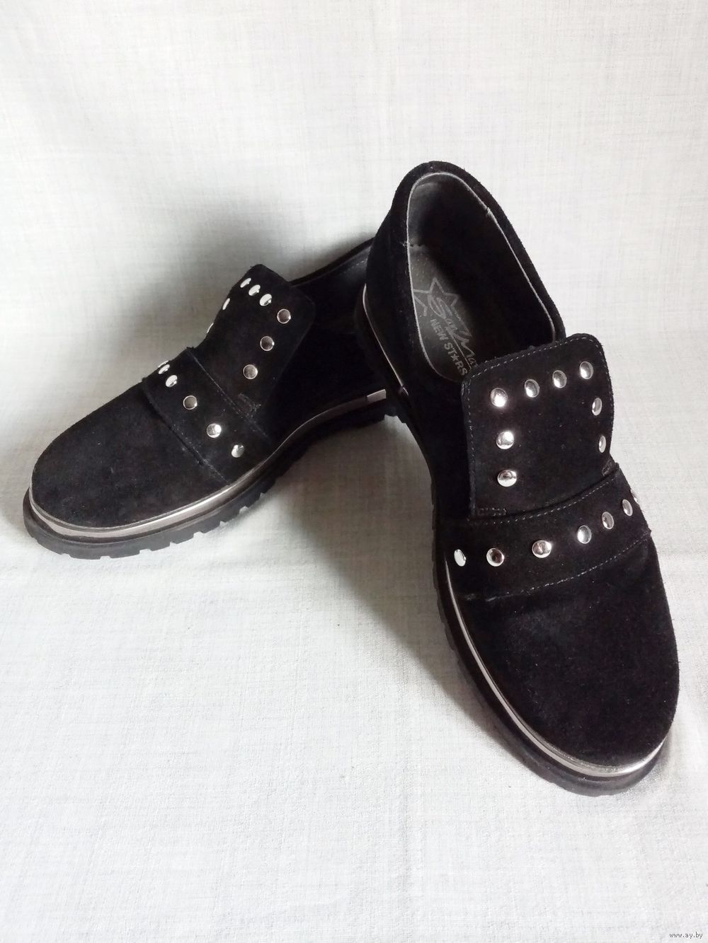 Натуральная замша, под язычком резинка для подъёма.