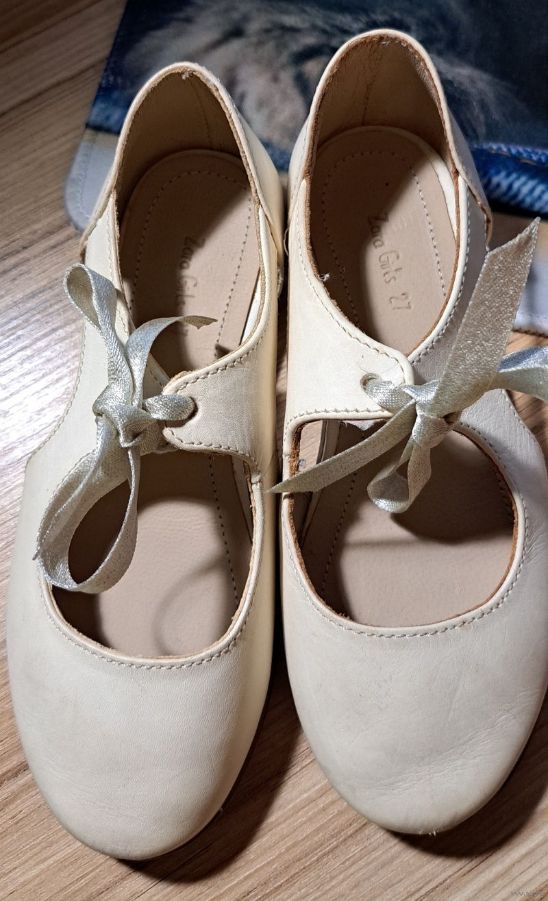 -Туфли бежевые на девочку «Зара», р.27 (по стельке 16.5см), б.у в отличном состоянии, бежевые. Цена-15руб