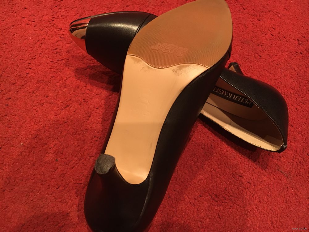 Натуральная кожа снаружи, внутри, стелька. каблук 7 см . Нос металлический золотой. Б\у 1 раз. По стельке 24-24,5 см. Удобные, качественные.
