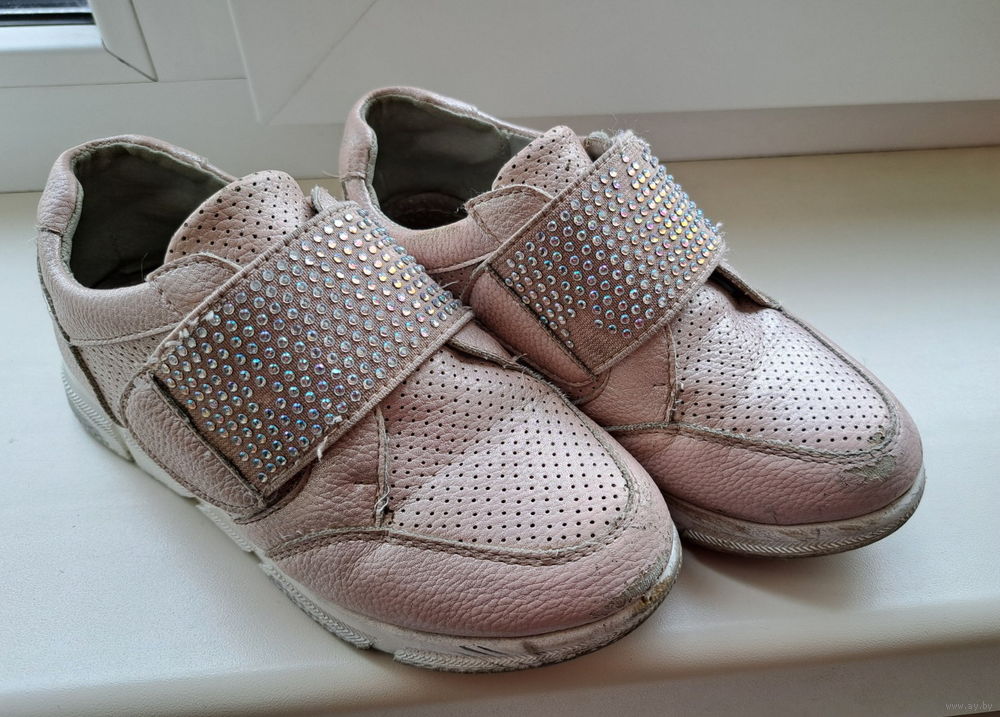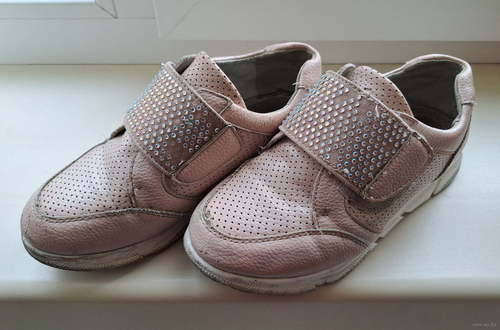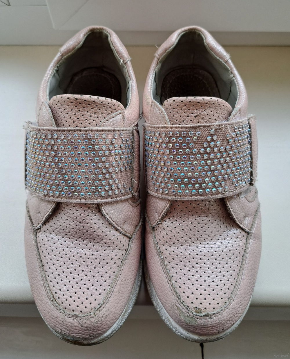 Туфли нежно-розовые со стразами на липучке, р.29 (стелька 19см), б.у в хорошем состоянии.