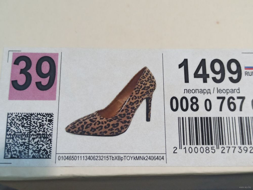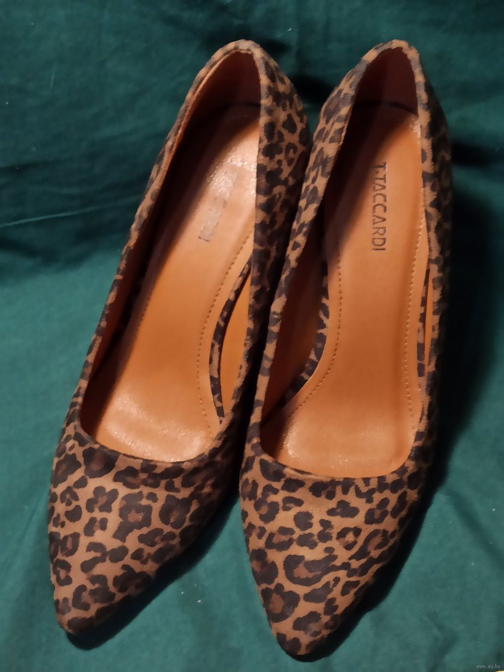 Туфли женские Т.Taccardi искусственная замша, под леопарда р.39 (26 см стелька.), каблук 10см.ПроизводстваКитай,в отличном состоянии .см. на фото. Оплата Наличные, Банковский перевод, Банковская карта, Контакт. Спасибо за интерес к лоту. Возможен торг в разумных пределах. Покупатель первым выходит на связь, уточняя вопросы встречи и оплаты. Телефон для связи указан в контактных данных, вопросы и предложения желательно присылать через Viber. Передача предмета и получение денег в г.Минске, возможна встреча в рабочие дни по договоренности . Расчет наличными с продавцом при получении лота. Возможна отправка почтой РБ в другой город по стране. Стоимость доставки покупателем согласно почтовым тарифам РБ . Покупая несколько лотов, Вы экономите на пересылке. Покупатель выходит на связь первым. Лоты высылаются в течении недели после оплаты. Если у Вас есть другие варианты - предварительно оговаривайте их по телефону.