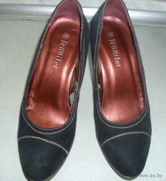 Туфли женские, экозамш (смотрится как натуральный), маркировка 38, но маломерят, подойдут на 37 р-р, или на узкую ногу 38 р-ра. Б/у совсем немного, купила на сайте, но мне оказались малы. Высота каблука 8см, подошва 1,5см, по стельке 24,5см, стоят родные набойки. Фирма Jennifer, обувь этой фирмы очень качественная. Из дефектов только облезла краска на внутренней стороне туфлей (не порвано). Все целое, туфли как новые, дешево продаю.