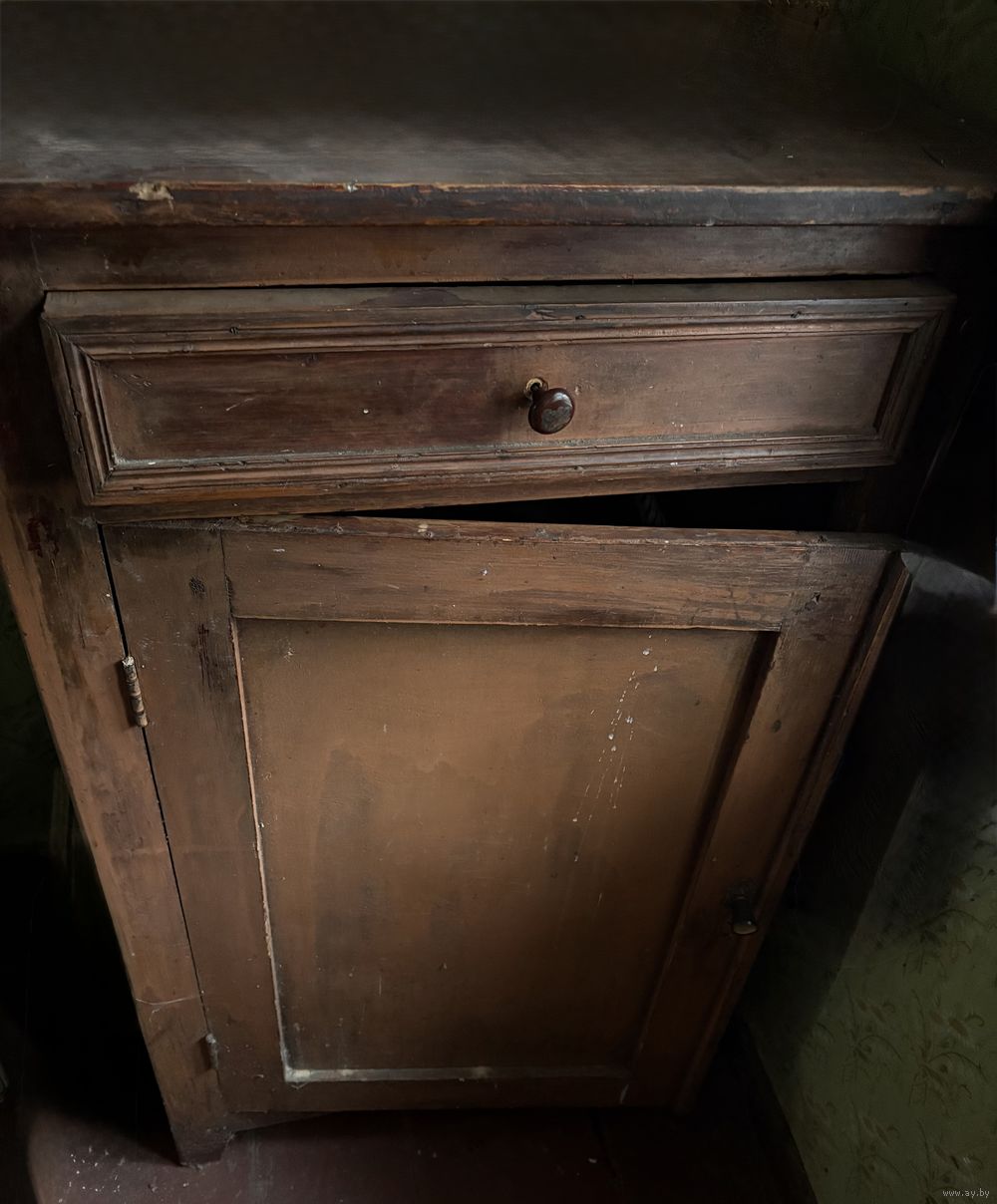 Тумба для интерьера с выдвижным ящиком и закрытыми полками. Дерево + фанера.Если ее привести в порядок и осовременить-будет очень интересный элемент интерьера. Из-за интересного размера тумба кажется очень легкой, воздушной.Состояние отличное