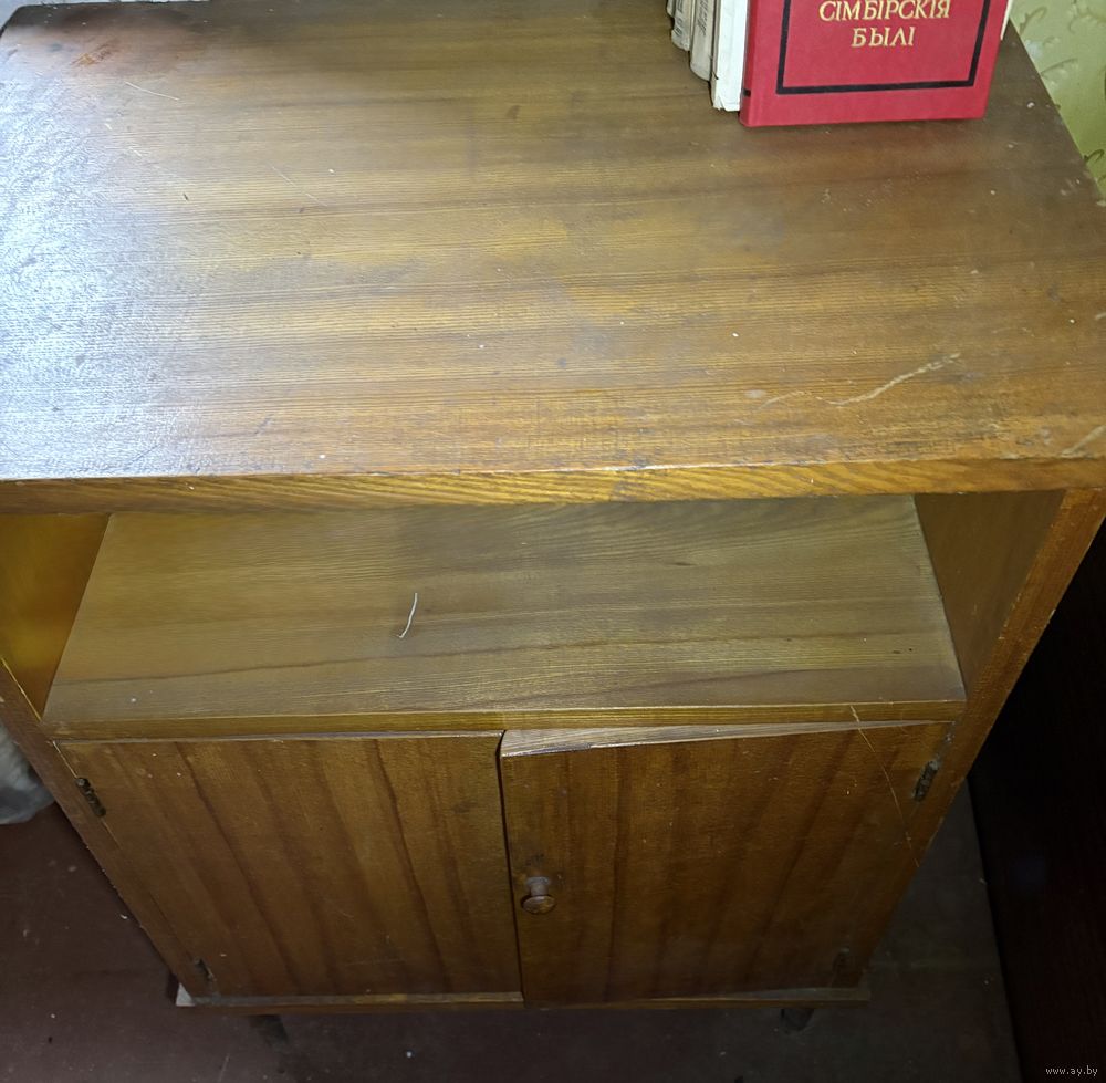 Тумба деревянная светлая старинная в крепком состоянии, НО не хватает одной задней ножки.Есть открытая полка и закрытые, как шкафчик.