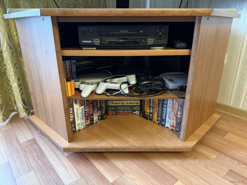 " Тумба для телевизора " - размеры ширина 113см высота 62см глубина 64см, 3 полки и верх, широкий верх который подойдет под любую подставку телевизора, б/у, данную мебель делали по индивидуальному заказу, в хорошем состоянии.