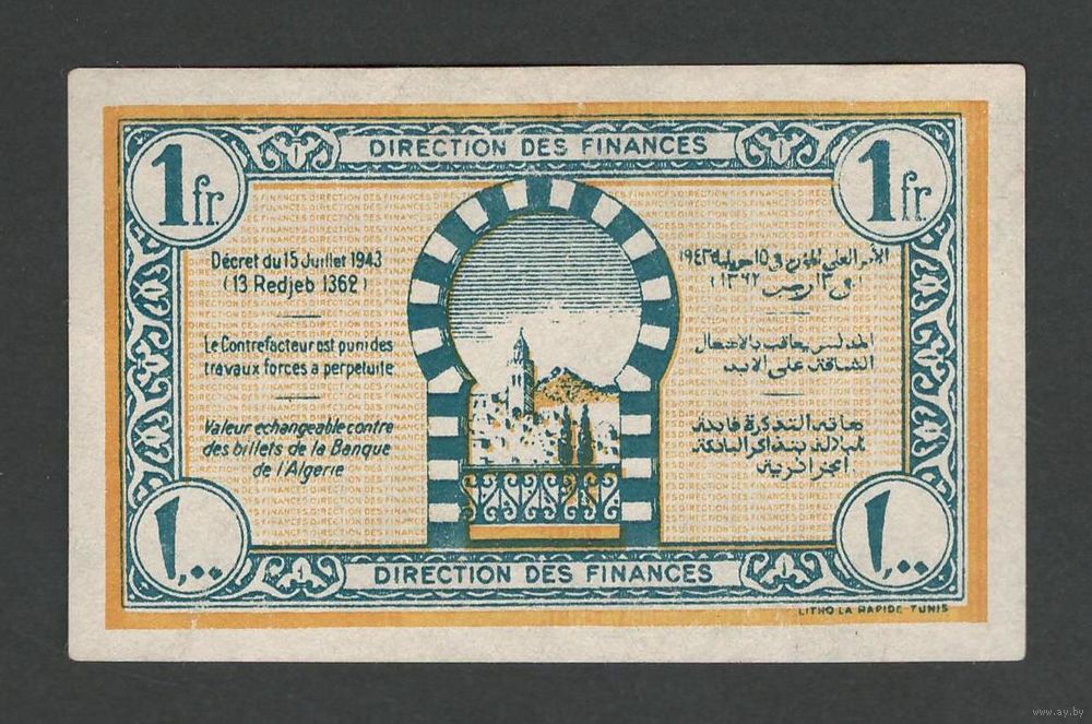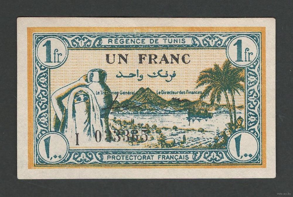 Тунис 1 франк 1943 года. Тип Р-55. Состояние аUNC