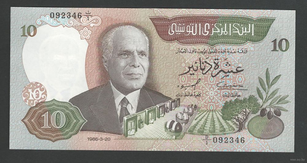 Тунис 10 динар 1986 года. Тип P-84. Состояние UNC
