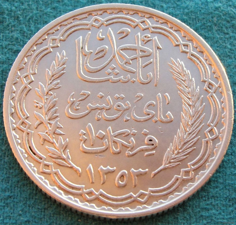 ///////// Доброго времени суток, спасибо, что заглянули в мой лоток!!! ///////// Данный лот выставлен на продажу как предмет коллекционирования и не является пропагандой чего бы то ни было, а также не является валютной сделкой!!!! Важно - Участникам торгов с отрицательным, нулевым или низким рейтингом просьба подтвердить намерения покупки лота по телефону или в обсуждениях лота. Лицам ранее не выкупившим у меня лоты, просьба ставки не делать, иначе они будут удалены. К Участию в торгах не допускаются лица не прошедшие верификацию на сайте. Продавец, сохраняет за собой право, снять ставку участника или отказать в продаже лота, если у продавца имеются подозрения в недобросовестности покупателя или отрицательные отзывы. Отправка обычным письмом, конвертом 1-ого класса, мелким пакетом (посылкой, бандеролью) с наложенным платежом и предоплата "на телефон" не рассматривается!!! В случае невыхода на связь или немотивированного отказа от покупки лота(ов), буду вынужден поставить отрицательный отзыв и переставить лот(ы). ////////// Информация: WWC номер KM # 262 Страна: Тунис Период: Французский протекторат (1890 - 1957) Валюта: Тунисский динар Вид чекана: Регулярный чекан Номинал: 10 франков Год: 1934 - 1939 Гурт: Рубчатый Форма: Круг Отношение авс/рев: Монетное (180°) Материал: Серебро 0.680 Вес (g) 10.0 Диаметр (mm) 28.0 Толщина (mm) 1.92 Тираж: 1.501.000 шт ///////// Состояние монеты на фото ///////// Описание: Моя оценка состояния может не совпадать с вашей. Внимательно изучите фотографию!!!