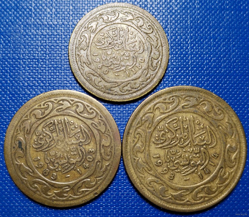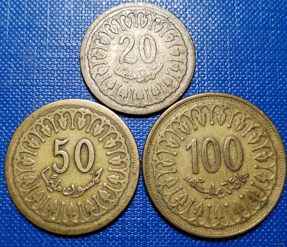 Тунис 20 (1960), 50 (1983), 100 (1993) миллимов (Цена за 3 шт.)