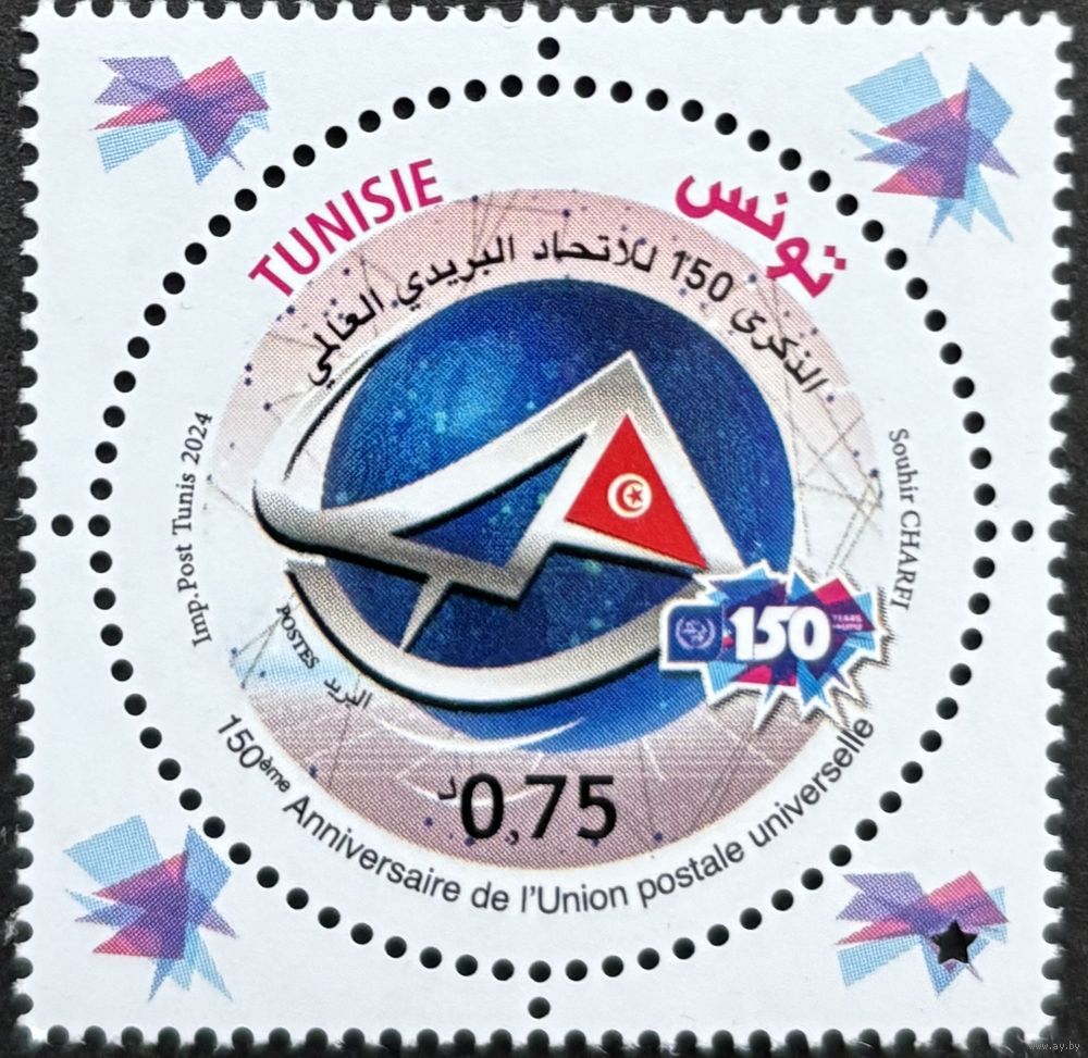 Тунис 2024 История почты. 150 лет ВПС. UPU. Совместный выпуск.