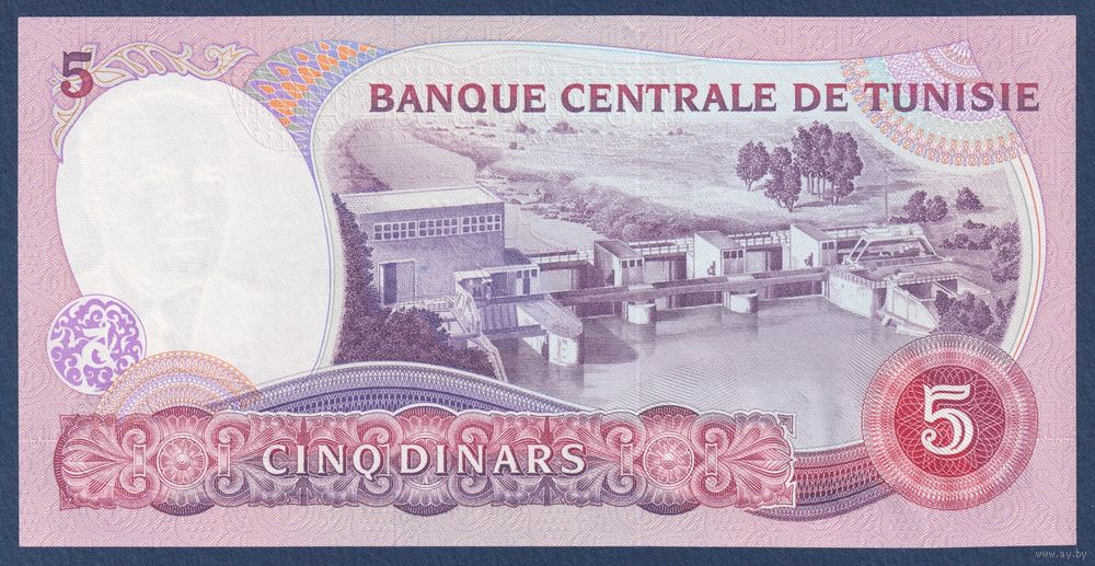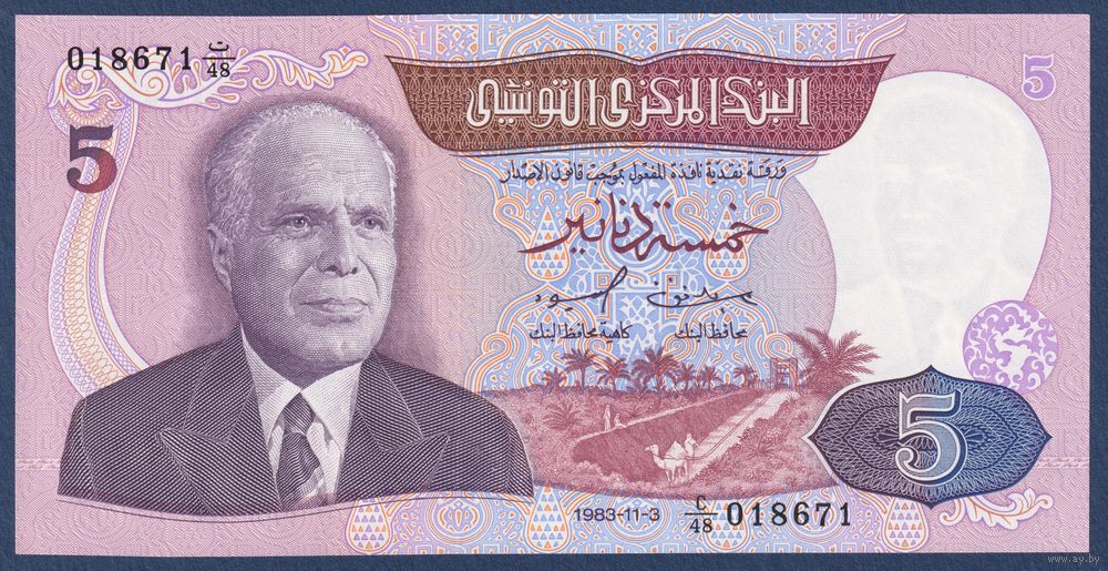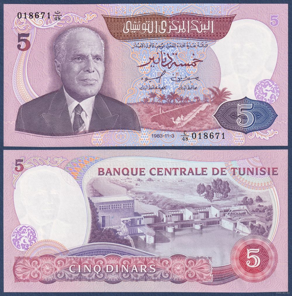 Тунис, 5 динар 1983 г., P-79 (C|48, первый президент Туниса Хабиб Бургиба), UNC