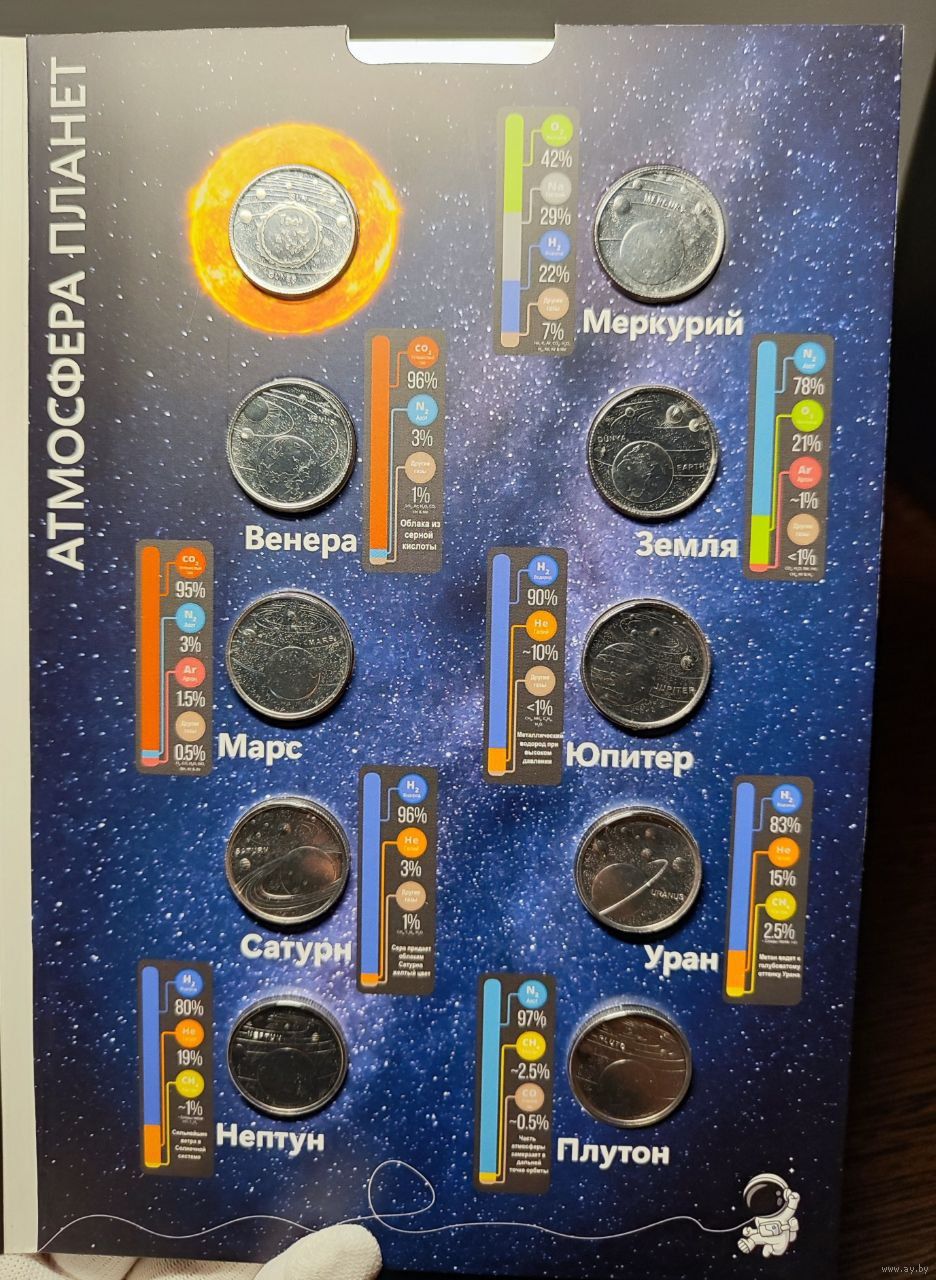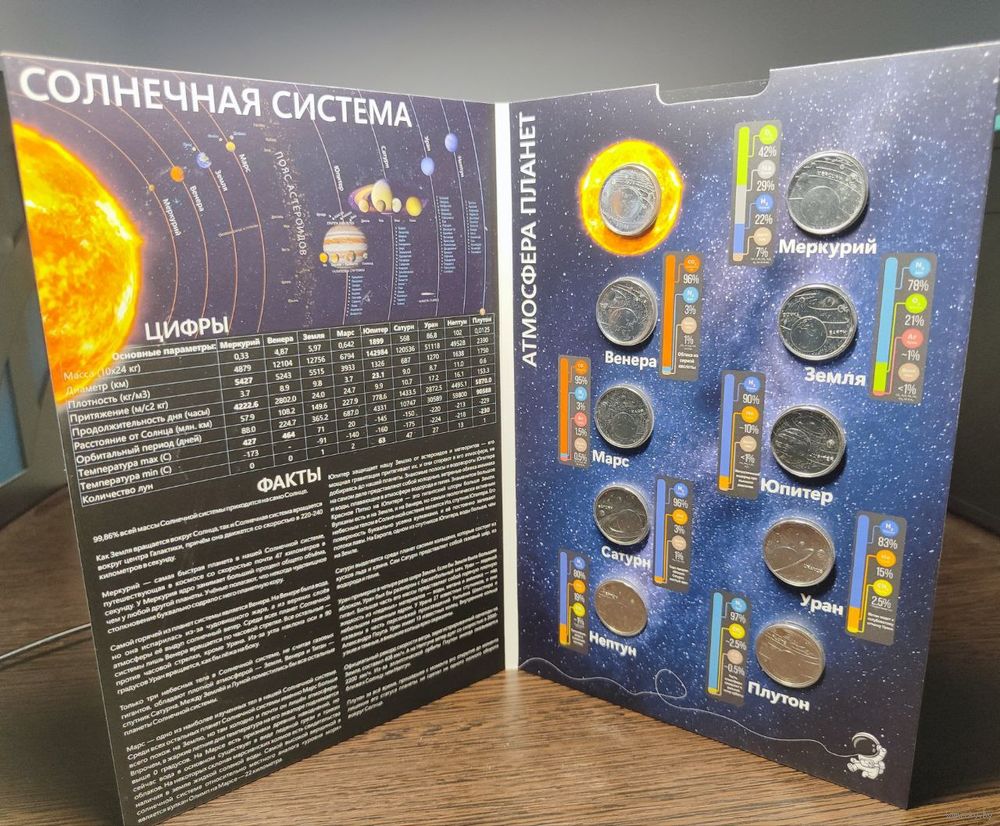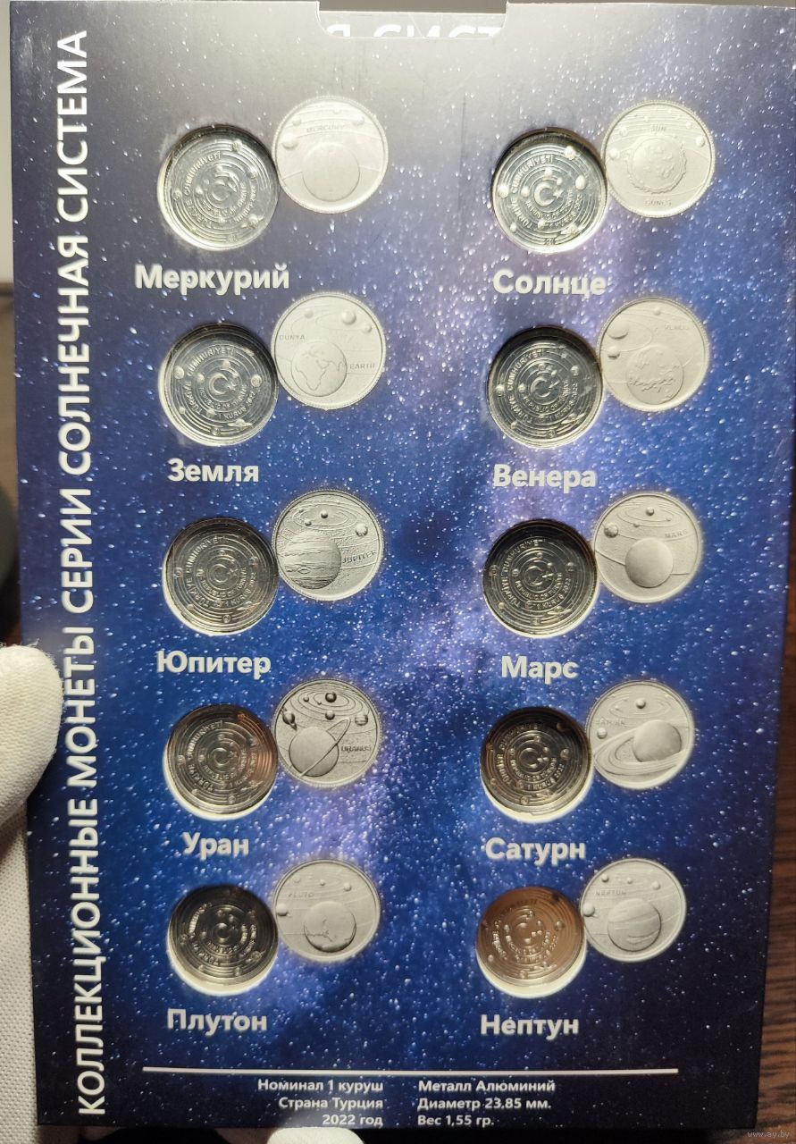 Турция, 1 куруш 2022 г., (набор из 10 монет в буклете - Планеты солнечной системы), UNC