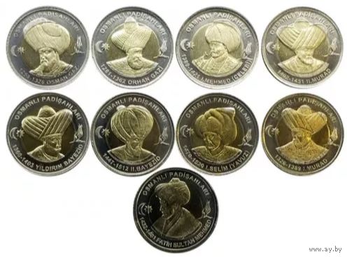 Турция набор монет 1 лира 2024 Султаны Османской империи.