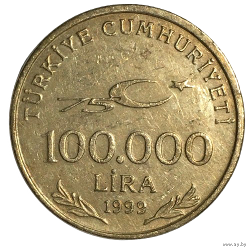 Турция 100.000 лир, 1999 - 75 лет Турецкой Республике