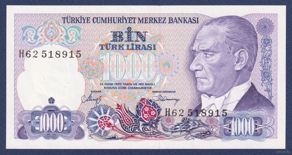 Турция, 1000 лир 1970 г, P-196(2) (I62, султан Мехмед Завоеватель, Стамбул), UNC