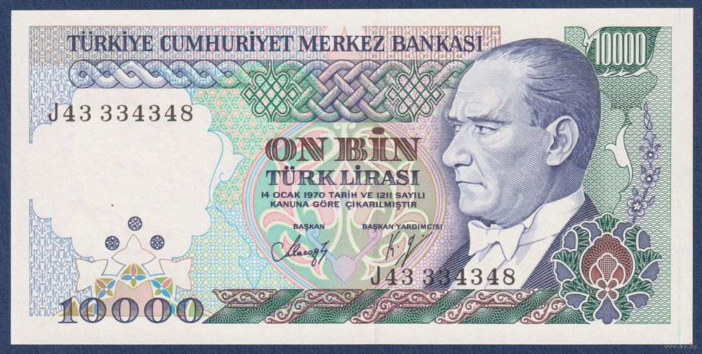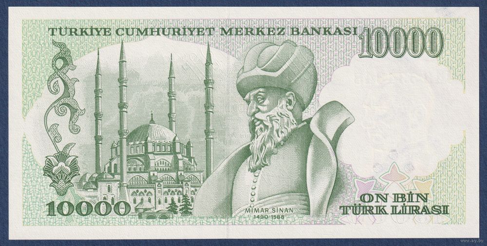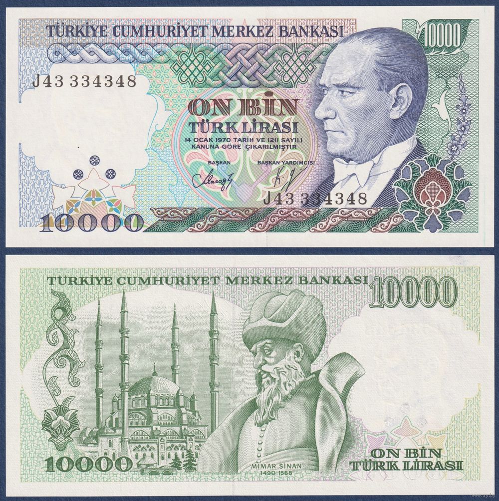 Турция, 10000 лир 1970 г, P-200 (J43, архитектор Мимар Синан, мечеть Селимие), UNC