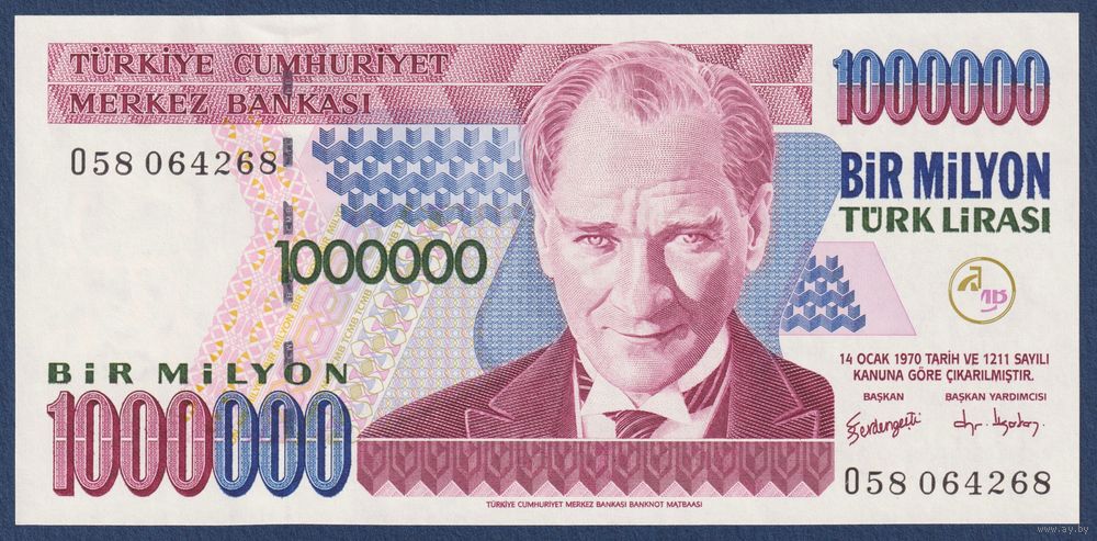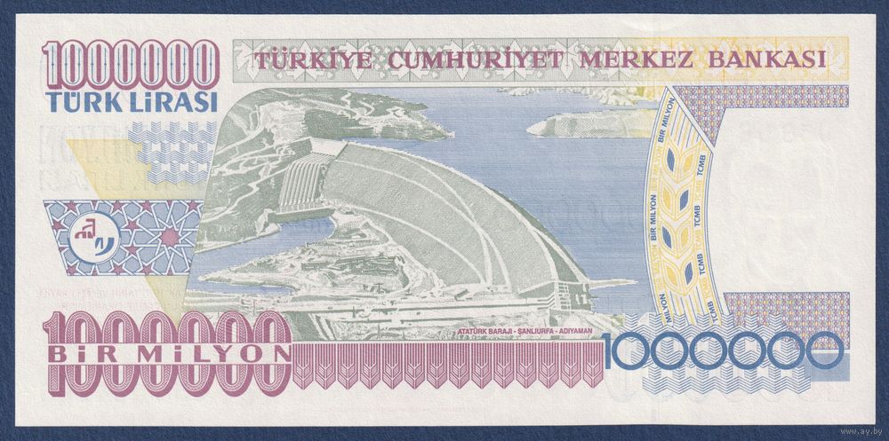 Турция, 1000000 лир 1970 г, P-213(1) (O58, плотина Ататюрка), UNC