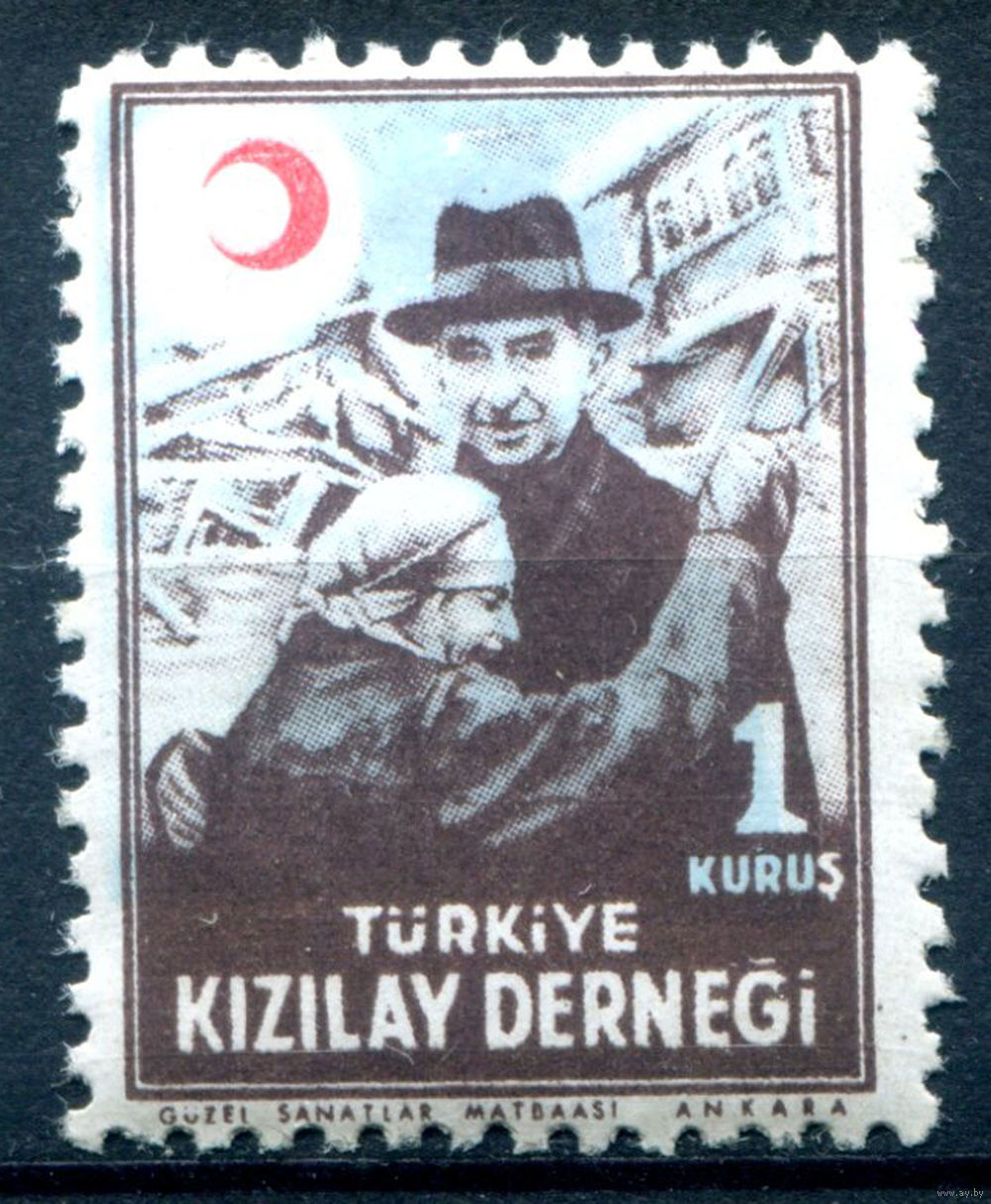 Турция - 1944/45г. - благотворительные марки лиги Красного Полумесяца, 1 K - 1 марка - MNH с слегка потрескавшимся клеем [Mi 94]. #4-W2-122-A-1