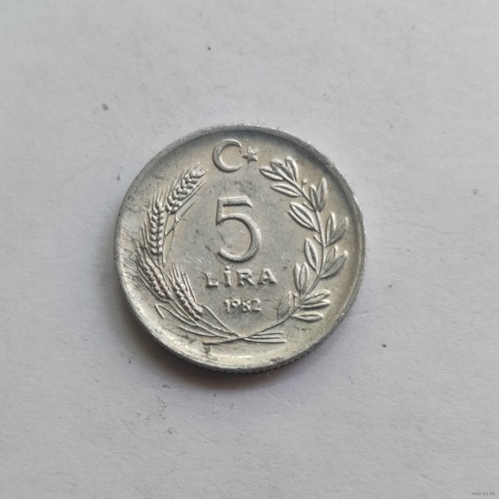 Номер KM# 949.1 Страна Турция Период Турецкая Республика (1981 - 2000) Валюта Турецкая лира Вид чекана Регулярный чекан Номинал 5 лир Год 1982 Материал Алюминий Гурт Рубчатый Форма Круг Отношение авс/рев Монетное (180°) Вес (g) 1,7 Диаметр (mm) 21 Толщина (mm) 1,8
