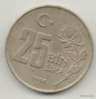 ТУРЕЦКАЯ РЕСПУБЛИКА 25000 ЛИР. РОЗА. Погодовка. Цена за одну монету.