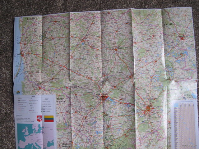Литва - подробная туристическая карта (50х60 см) на качественной бумаге с планами центров Вильнюса, Каунаса, Шауляя и Клайпеды
