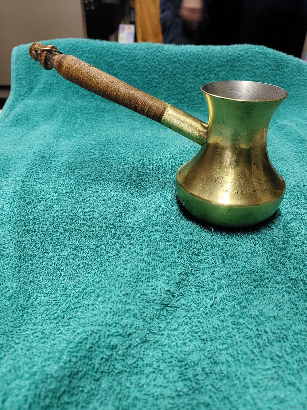 | внешний слой латунь, тяжёлая, объём 150-170 мл, деревянная ручка. Имеется дарственная гравировка | |