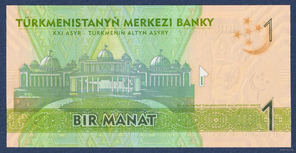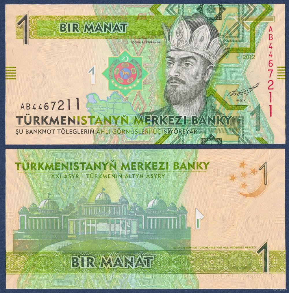 Туркменистан, 1 манат 2012 г, P-29a (AB, cултан Тогрул-бек), UNC