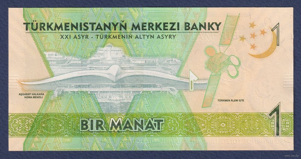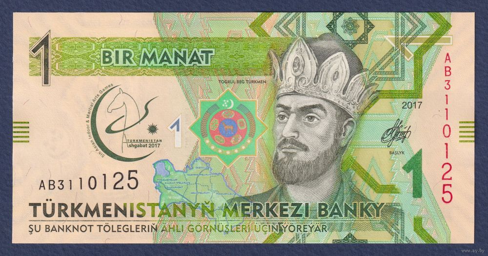 Туркменистан, 1 манат 2017 г., P-36 (памятная: V азиатские игры в закрытых помещениях & игры по боевым искусствам), UNC