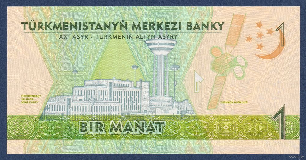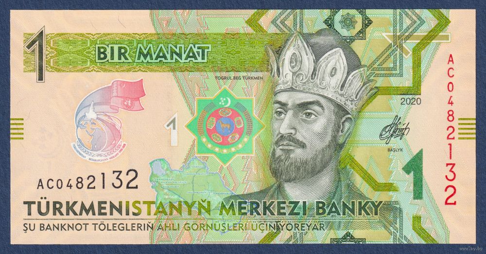 Туркменистан, 1 манат 2020 г., P-W42 (AC, памятная - 25-я годовщина нейтралитета, султан Тогрул-бек), UNC