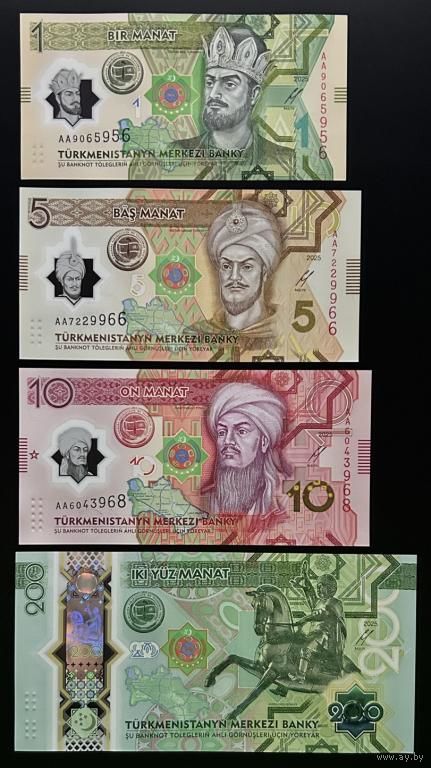 Туркменистан набор от 1 до 200 манат 2025 года. Типы Р-48, Р-49, Р-50, Р-54. Состояние UNC!