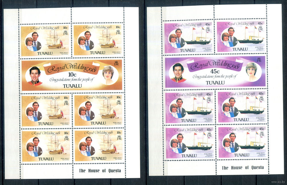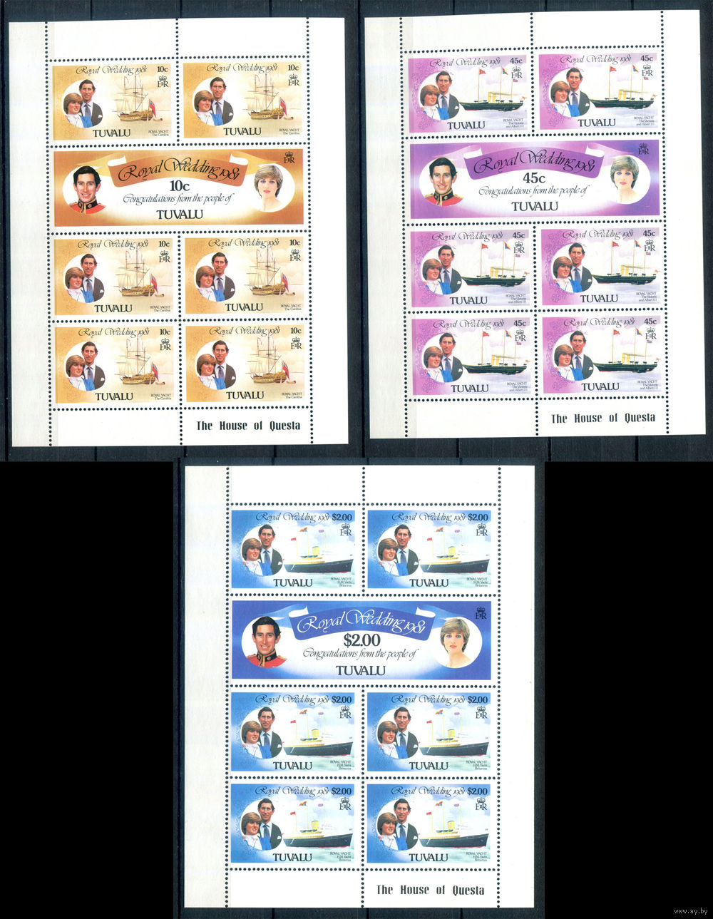Тувалу - 1981г. - свадьба принца Чарльза и принцессы Дианы, корабли - 3 малых листа - полная серия, MNH [Mi свадьба принца Чарльза и принцессы Дианы, корабли]. #3-WB-Z-2-24