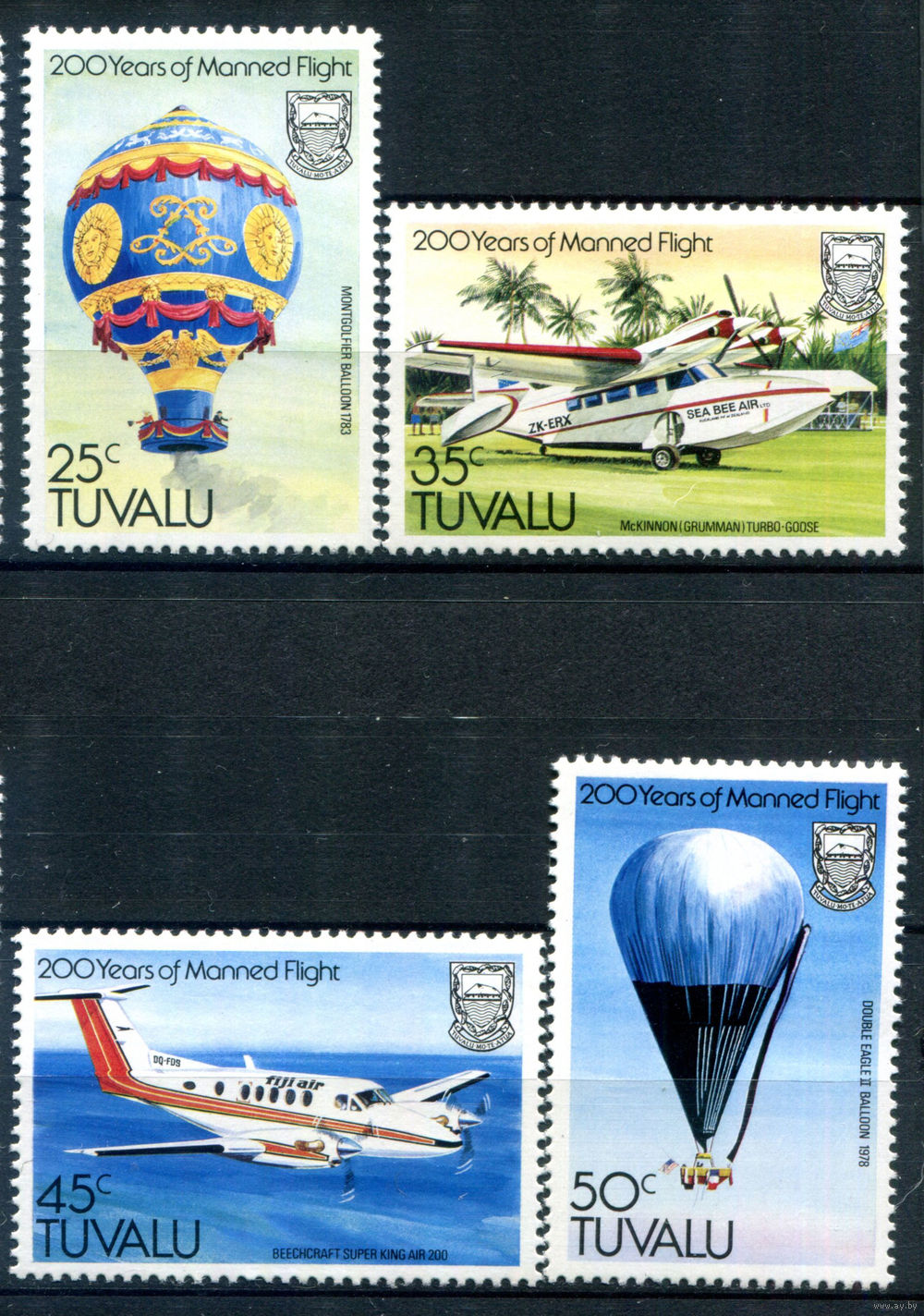 Тувалу - 1983г. - воздушные шары, дирижабли, самолёты, 200 лет авиации - 4 марки - полная серия, MNH с небольшими повреждениями клея [Mi 199-202]. #3-WB-83-B-2