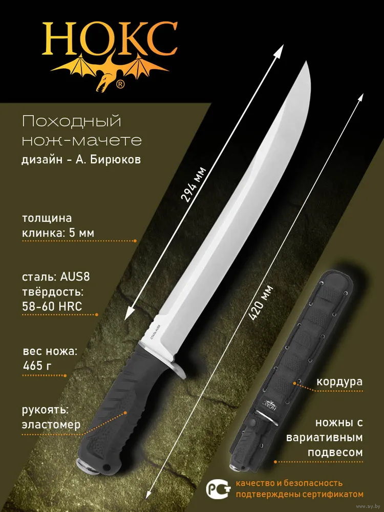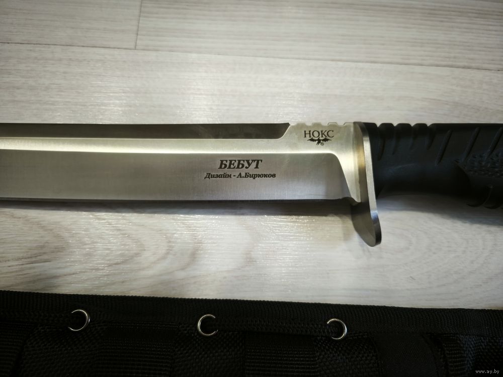 Тяжёлый полевой нож "Бебут" от компании "Нокс", является самым крупным в линейке полевых ножей и практически переходит в разряд мачете. Длина клинка и вес позволяют использовать его для рубки кустарника и небольших деревьев, заготовке хвороста в походе или на охоте, разделке туши, а так же для выполнения других бивачных работ.