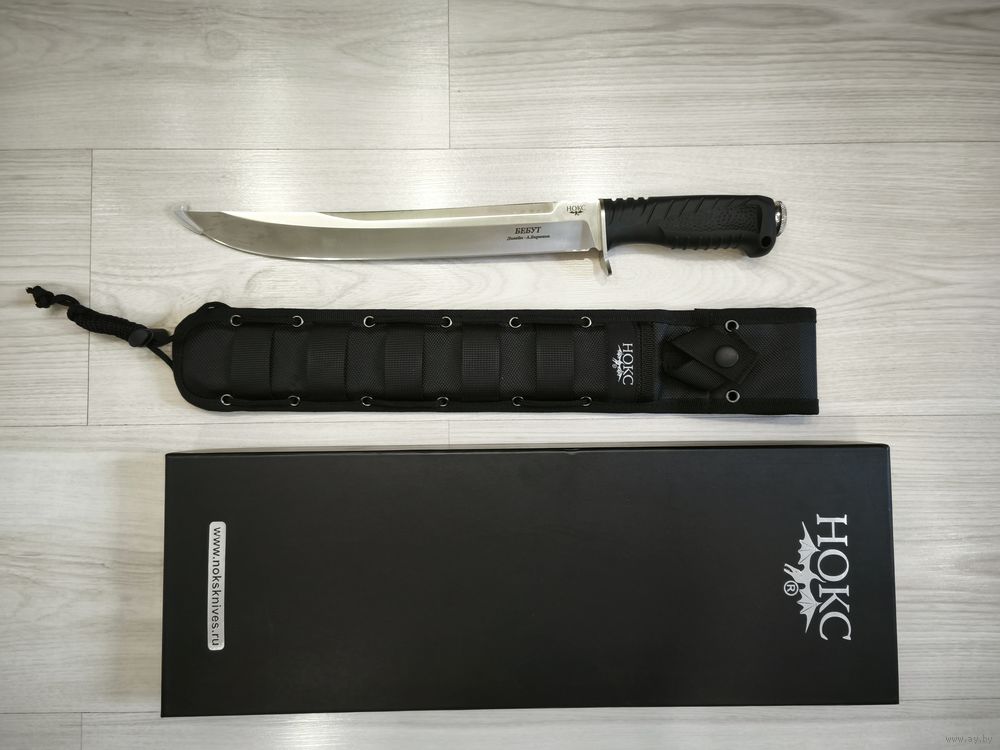 Тяжёлый полевой нож "Бебут" от компании "Нокс", является самым крупным в линейке полевых ножей и практически переходит в разряд мачете. Длина клинка и вес позволяют использовать его для рубки кустарника и небольших деревьев, заготовке хвороста в походе или на охоте, разделке туши, а так же для выполнения других бивачных работ.