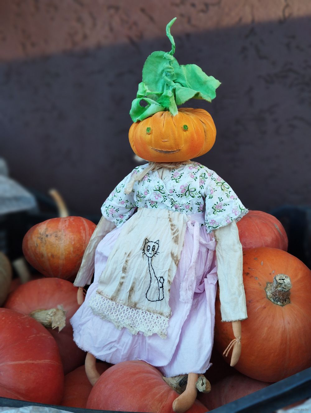 Тыковка куколка ручной работы из текстиля высота 45см голова поворачивается