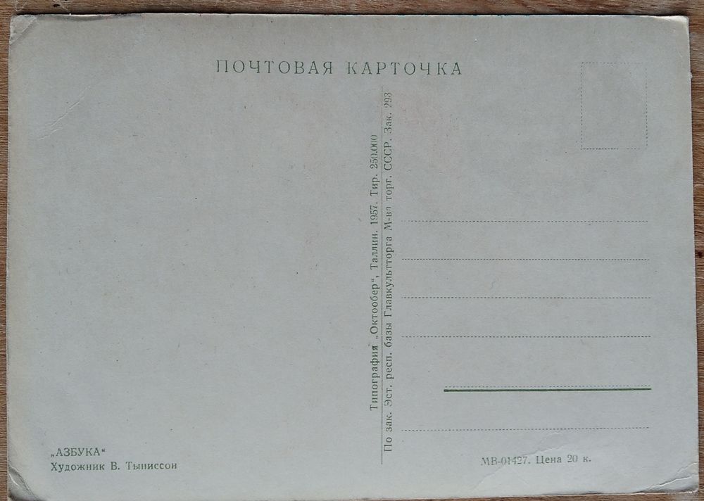 Тыниссон В. "Азбука". 1957 г. Таллин. Чистая.
