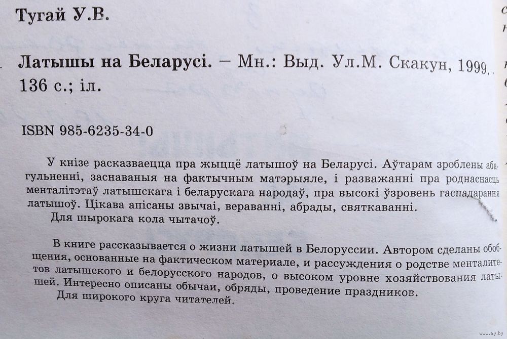У. В. Тугай. Латышы на Беларусі. Аўтограф аўтара. Мінск : выдавец Ул. М. Скакун. 1999 г. 133 с. Мяккая вокладка.