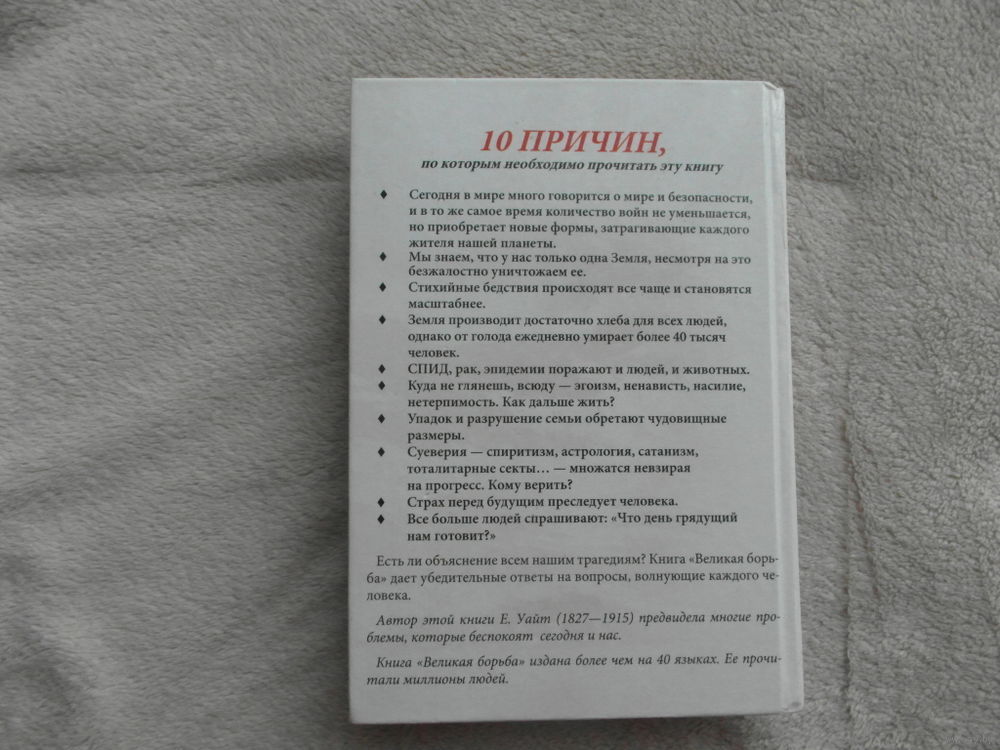 Основной труд известной христианской писательницы (1827-1915) - серия книг Конфликт веков. Заключительная книга серии описывает борьбу добра и зла на протяжении истории христианской Церкви. История Католической церкви, Реформация в Европе, гонения , которым подвергались последователи Христа, а также что ожидает наш мир в обозримом будущем.