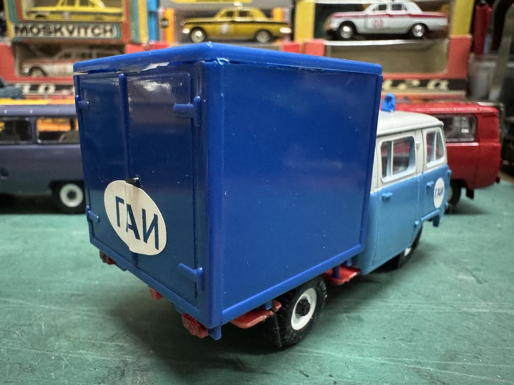 УАЗ-39094 Фермер ГАИ, редкий двухцветный заводской окрас, кабина пластик, кузов будка, Тантал, Агат, Саратов. Дно с надписью УАЗ-3962 №01 ставилось универсально почти на всех поздних выпусках УАЗов. Оригинальные рокальные заводские наклейки ГАИ.